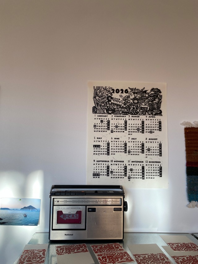 ⚫︎⚫︎⚫︎2026年のカレンダー⚫︎⚫︎⚫︎ 版画を制作しました。 今年は少し小さいサイズでモノクロです。 328×433mm 版画用和紙 油性インク 価格5,500円 ▲▲▲ 一枚ずつ手で刷っているため、色むら・シワ等がございます。 ご理解いただけますと幸いです。 くるりと巻いた状態で発送します。 ▲▲▲