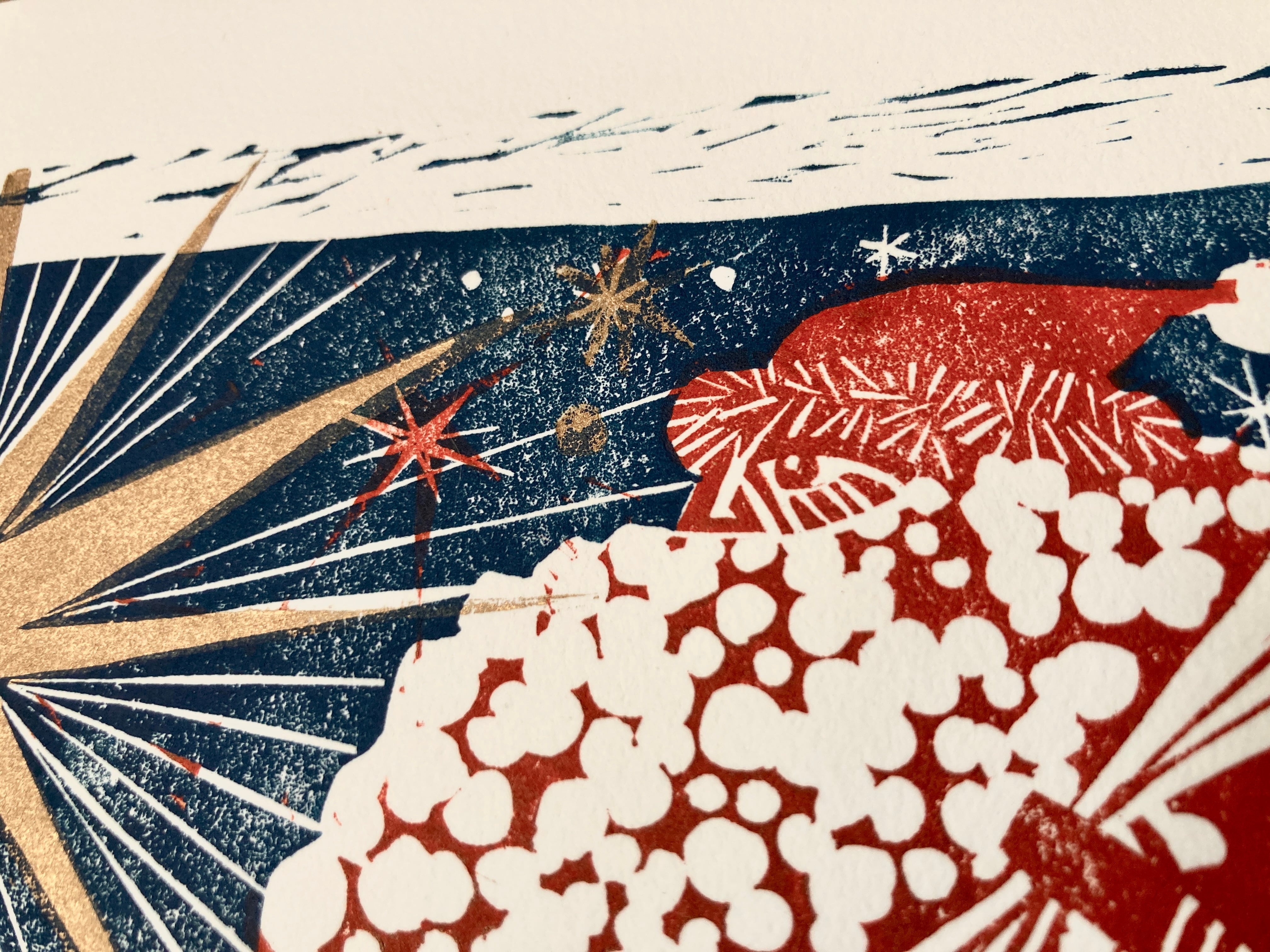 ● 1枚ずつ手で刷っているため、色むら・インクの飛び散り・シワ等がございます。